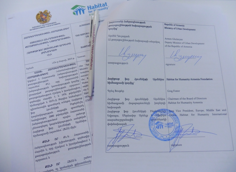 Համաձայնագիր՝ քաղաքաշինության նախարարության և Հաբիթաթ ֆոր Հյումենիթի Արմենիայի միջև